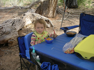 We absolutely love the Fruita campground but thought that we needed to have some space far from others just in case Ava put up a stink around bedtime. Whoever coined the term “parental instinct” absolutely gets it. Boy, that girl sure did wail. I did finally coax her to relax and go to sleep but she woke again in the middle of the night and for several hours we catered to her every whim- giving her light sticks, snacks, drinks, and a bed to lie between us. Finally she passed out again but only on Jon’s shoulder and the rest of the night was rough for him.